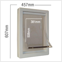The Super Large Pig in Mud Pet Doors are designed to be fitted into wooden doors. Made from UV resistant thermo-plastic frames, with a soft dog-friendly vinyl flap. The flap seals using a floating magnetic seal, and the door can be locked shut using a lock-out slide.